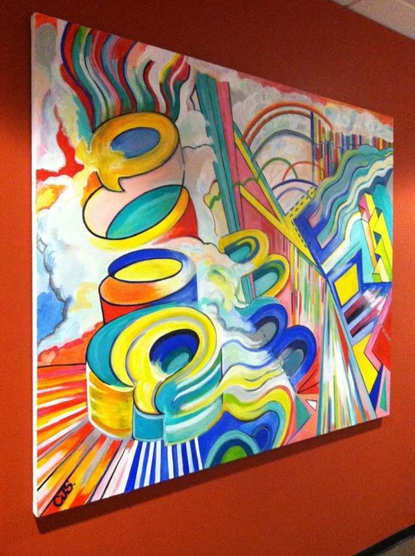 Magnetic Engines, acrylic on canvas, 36” H x 48” W